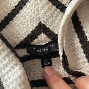 Talbots Women's Sweater Size XL Cowl Neck Waffle Knit Thermal Stretch Striped