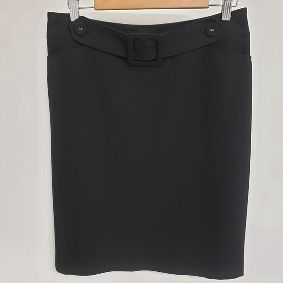 Talbots Women's Sz 10 Straight Stretch Black Skirt with Removeable Front Buckle