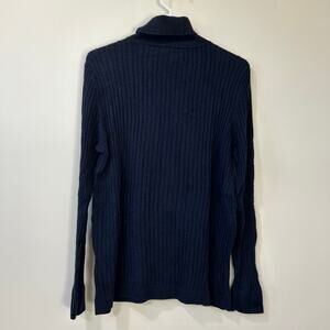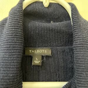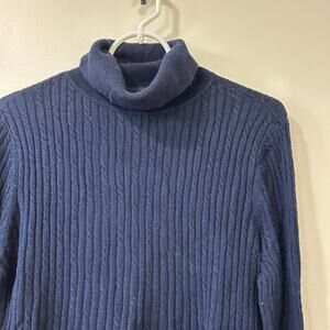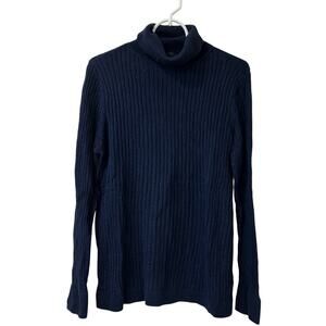 Talbots Womens Sz Large Navy Blue Cableknit Turtleneck Sweater Basic Preppy