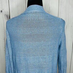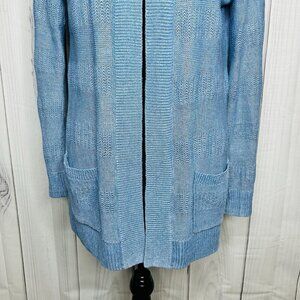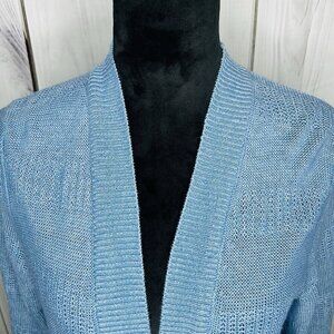Talbots Womens Sz M Blue 100% Linen Open Front Duster Cardigan Sweater