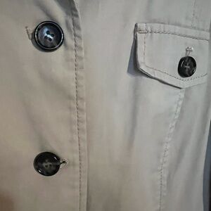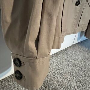 Size 14P, button down jacket with 2 pockets on front and. 1 faux pocket. Double buttons on sleeves, epaulettes on shoulders - lightweight - 98% cotton and 2 % spandex so it is very soft and comfortable. Great jacket EUC