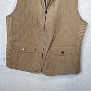 Good preloved condition Talbots Womens Tan Quilted Zip-Up Front Pockets Sleeveless Vest L