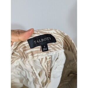 Talbots Womens Tan Tropical Mid Rise Cropped Pants Sz 2 Resortwear Casual Mature