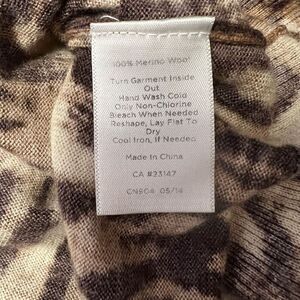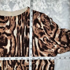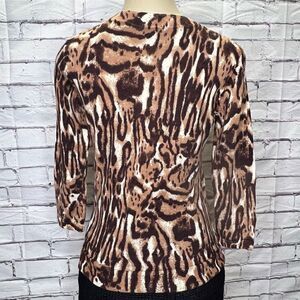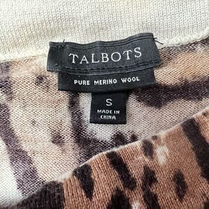 Talbots Womens Tan and Cream 3/4 Sleeve Merino Wool Animal Prints Sweater Small