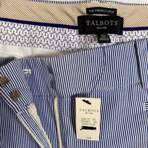 Talbots Womens The Perfect Crop Pants Blue Pinstripe Cotton Blend Petite 10P