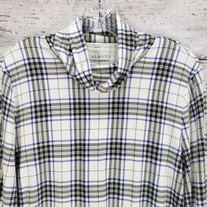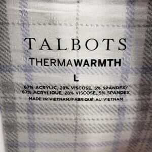 Talbots -Women's Thermawarnth Plaid Turtle Neck Soft Stretch Top Size Large. Acrylic, viscose, spandex fabrics. Approx. measurements pit to pit 19 in. Sleeve length 25 in. Top length 26 in. Does have stains. See pics. Pre-owned in good condition, no holes.