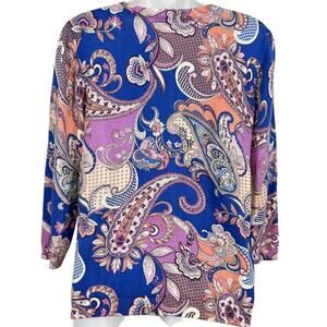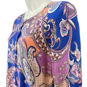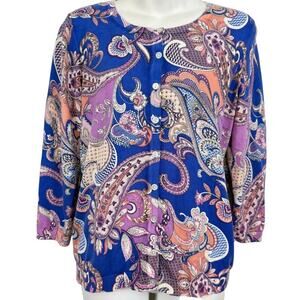 Talbots Womens Thin Violet Blue Paisley Floral Cardigan Sweater Cotton Blend M