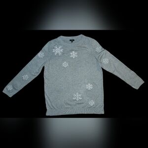 Talbots Women's Tinsel Snowflakes Crewneck Sweater Size Medium Petite