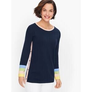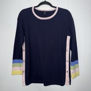Talbots Women’s Tipped Side Button Sweater Navy Blue Size MP
