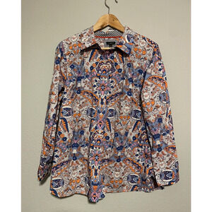 Talbots Womens Top 1X Floral Button Up Long Sleeve Lightweight Hippie Artsy Boho