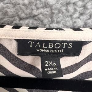 Talbots Women's Top Blouse 2XP Black White Chevron Stripe Long Sleeve Career