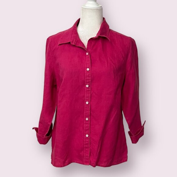 Talbots Women's Top Button Down Shirt Pink Linen Size 12P Long Sleeve