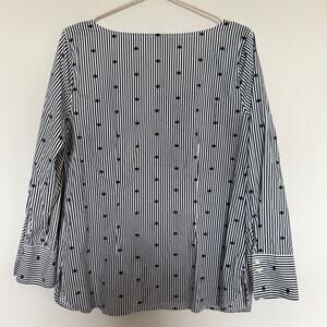 Talbots Womens Top Large Black Stripes Polka Dots Side Zipper Office Career