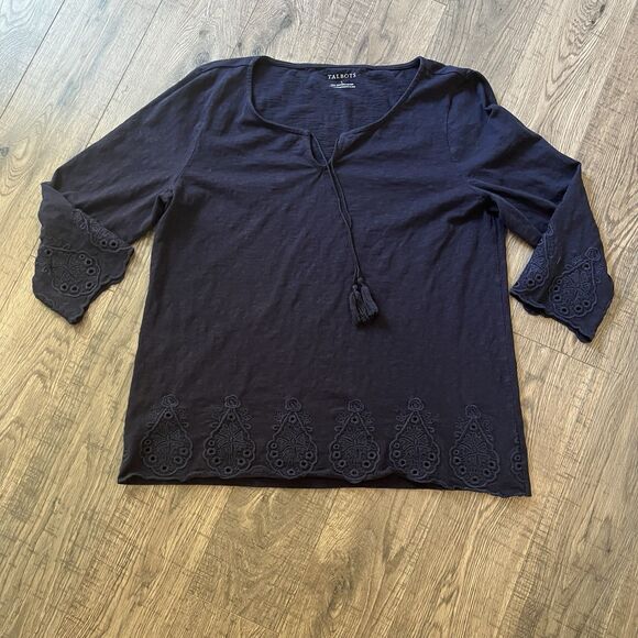 Talbots Women’s Top Large Peasant Top Tassels Embroidered