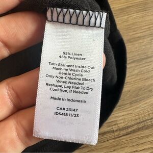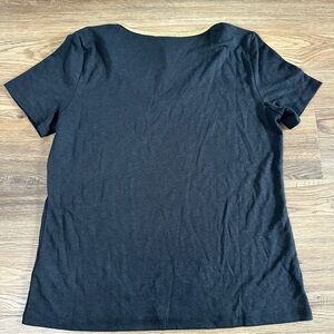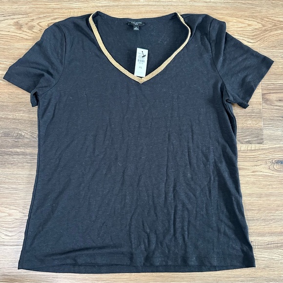 Talbots Womens Top Linen Gold Bead Trim Tee Black Short Sleeve Petite Small NEW
