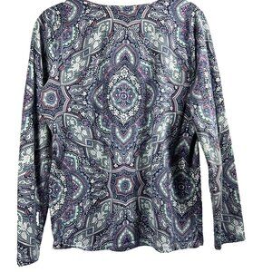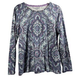 Talbots Women's Top Size Medium Petite MP Blue Paisley Long Sleeve Pullover