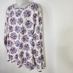 Talbots Womens Top Tee Size 2X Multicolor Long Sleeve Pullover Floral Round Neck