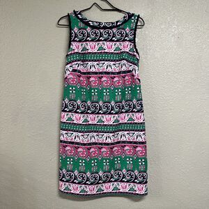 Talbots Women's Tulip Floral Print Shift Dress Size 4 Pink White Spring Easter