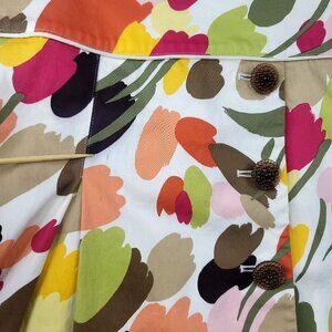 Talbots Womens Tulip Print Pleated A-Line Skirt Size 16 Knee Length Front Button