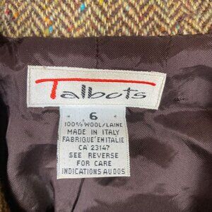 Talbots Womens Tweed Blazer Jacket Size 6 Brown Wool Made In Italy