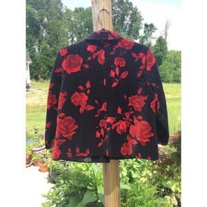 Talbots Womens Velvet Blazer Sz 12p 12 Jacket Black Red Rose Whimsygoth Romantic