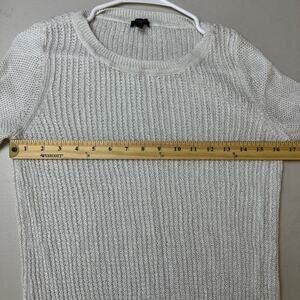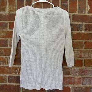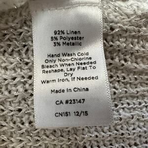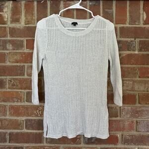 Talbots Women's White 3/4 Sleeve Silver Shimmer Knit Sweater Size Large Petite