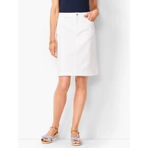 Talbots Womens White Classic Denim Skirt Size 6 Mid Rise 5-Pocket Zip Preppy