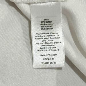 66% cotton 16% polyester 16% lyocell 2% spandex. Machine washable.