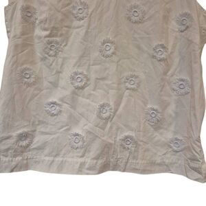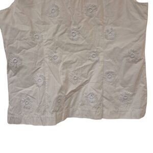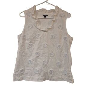 Talbots Women's White Cotton Ruffle Neck Sleeveless Embroidered Top EUC sz PM Petite Medium