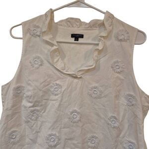 Talbots Women's White Cotton Ruffle Neck Sleeveless Embroidered Top