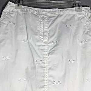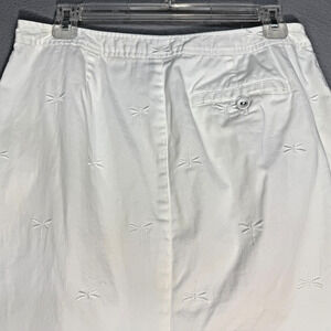 Talbots Cotton Knee Length Skirt - Embroidered Dragon Fly Design, split in back. Front closure and zipper FEATURES: · Measurements: Waist 15 inches, Length 19.5 inches · Style: Classic, Preppy, Office, Casual, · Flaws: Light spot on hem in back - see pictures · Size: 8 · FAST SHIPPING: I ship next business day! · I ACCEPT REASONABLE OFFERS · I appreciate you stopping by my closet ❤️