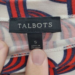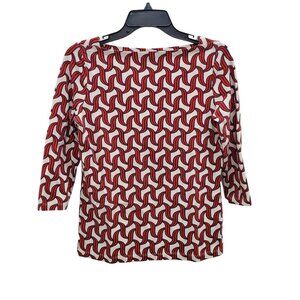 Talbots Women's White Red Abstract Print Modal Blend 3/4 Sleeve Top Size S