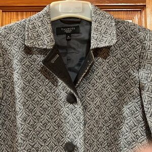 Elevate your wardrobe with this chic Talbots jacket. Featuring a stylish black and white pattern, this piece is perfect for any occasion. Enjoy the comfort and elegance that Talbots is known for.