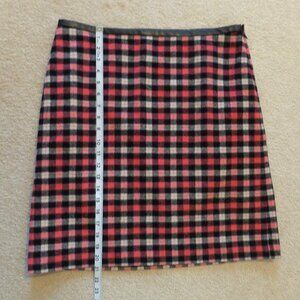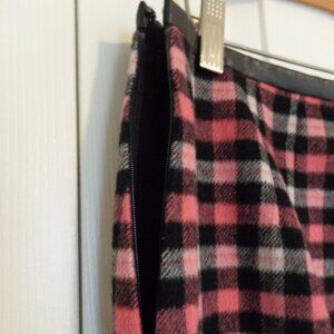 Talbots Women's Wool Blend Plaid Mini Skirt Pink Black Side Zip Lined Size 10