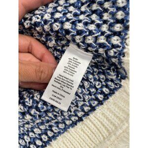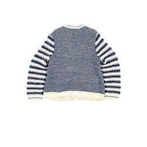 Talbots Womens XL Blue White Striped Fair Isle Eyelash Trim Cardigan Sweater