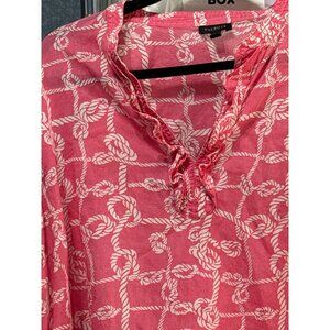 Talbots Womens XL Pink Nautical Rope Print Blouse 100% Cotton Made In Indonesia