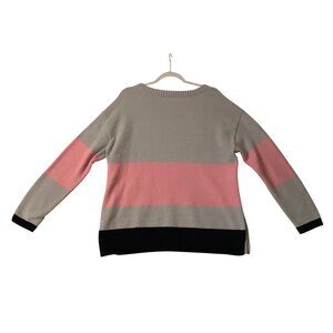 Talbots Womens XL Striped Sweater Pink Gray With Black Hem Soft Button Detail