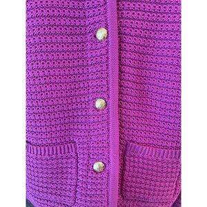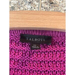 Talbots Womens XS Fuchsia Crochet Knit Cardigan With Gold Button Closure & Front