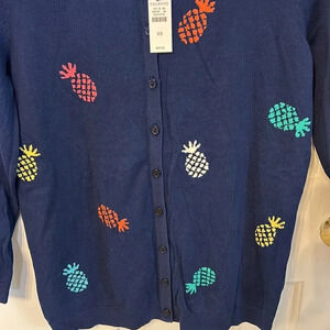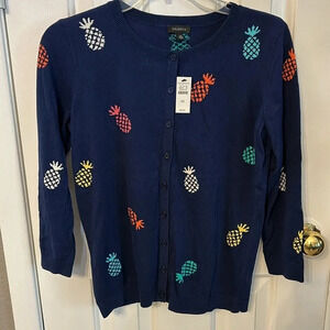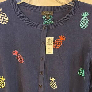 Talbots Women’s (XS) Navy Pineapple Charming Cardigan Crewneck Sweater NWT