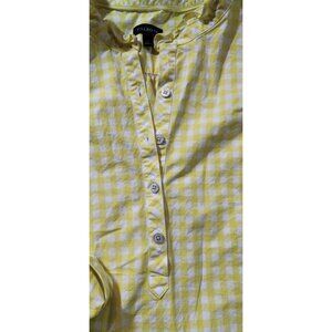Talbots Womens Yellow Gingham Cotton Blouse L With Button Details & Long Sleeve