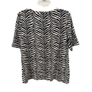 Talbots Womens Zebra Print Scoop Neck T-Shirt Size L Black/White