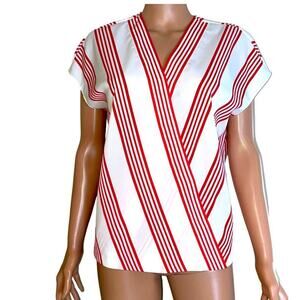 Talbots Women's blouse Faux Wrap Striped Top White Red Size MP short sleeve top