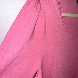 Talbots Womens size XL Pink Scoop Neck Scalloped edge puff sleeve Blouse