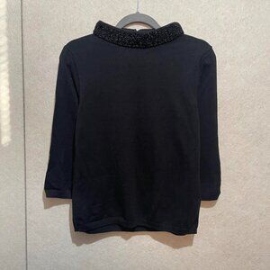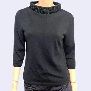 - features: stretchy, standing collar embroidered with beads and back buttons closure, 3/4 sleeve
