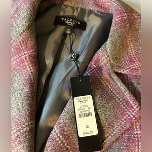 Talbots Womens wool Gray Pink Plaid Blazer Size 12 P