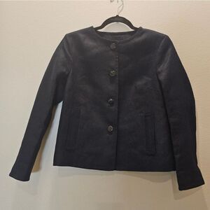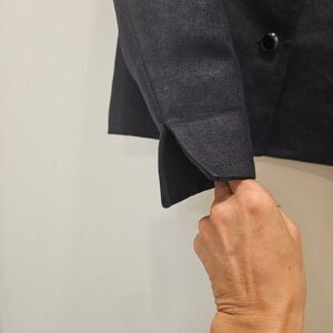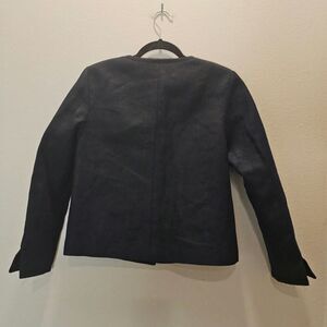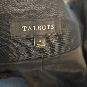 Talbots Women's Black Cropped Round Neck Linen Blazer Size 4