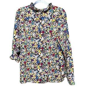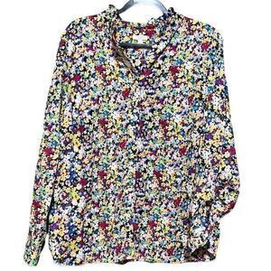 Talbots Womens Blouse Top Button Front Cotton Multicolor Floral Size XL