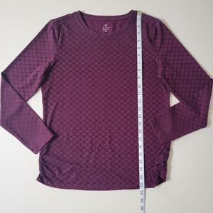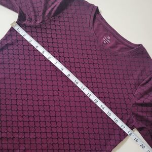 Part of T by Talbots, their most comfortable collection ever! This wear-with-everything t-shirt in the supersoft jersey fabric you love has breathable stretch that moves with you. Detailed with a crewneck, long sleeves, and ruching at the sides. In a lattice print, it layers perfectly. Excellent condition.