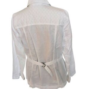 Talbots Womens Soft Linen Blend Button Front Casual Safari Jacket White Small