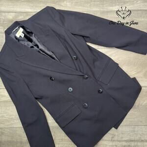 This Talbots two-button blazer, navy as a midnight sky, wears its condition proudly - nearly untouched. Crafted from wool with a whisper of lycra and spandex, it offers a sturdy warmth, and a nod of acknowledgement to the woman who knows her style, and wears it well.
